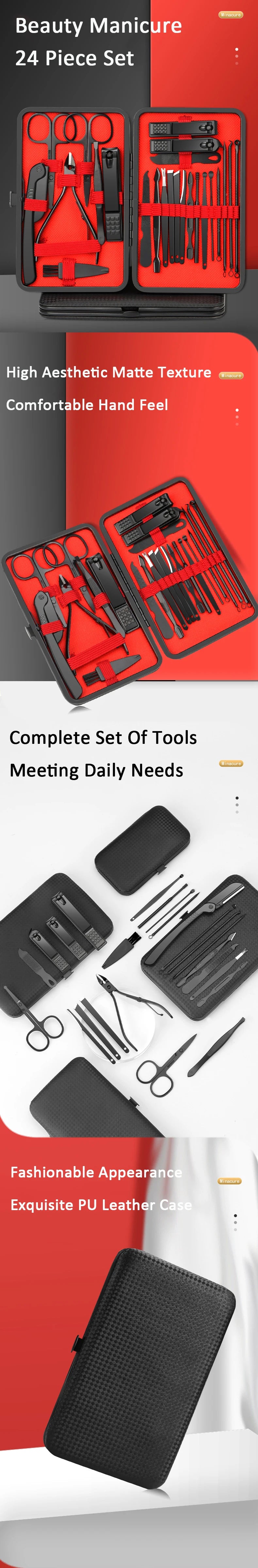 7/10/12/18/20/24PCS Set Professional Manicure Set Kits Stainless Steel Fingernail Toenail Clppers Set with Leather Portable